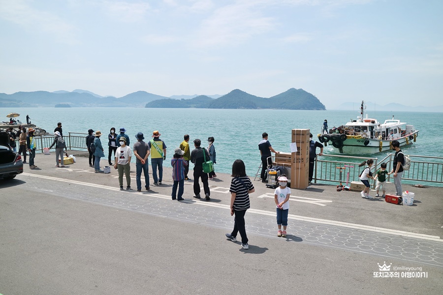 저번에 여수 여행 때도 들렀던 곳인데요. 지금 같으면 훨씬 봄 풍경인 줄 알고 진섬교를 지나는데 왜 이렇게 바닷물이 많이 빠졌는지 갯벌이 드러났거든요. 주민인지 관광객인지 모르겠지만 바지락을 따기 위해 초집중.밭 가는 것처럼 김매기를 쉬지 않거든요.