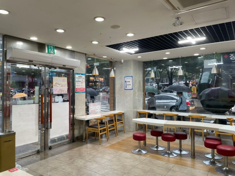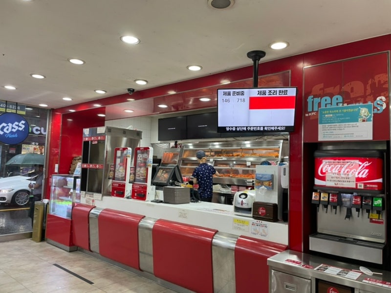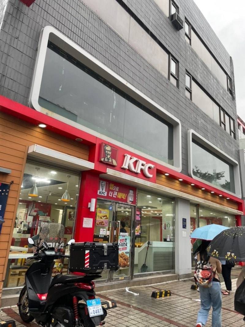 학동역에 위치한 KFC 학동역입니다.비오는 날 찍어서 센티미터로 보여요.학동역 1번 출구로 나오면 바로 KFC가 보입니다.